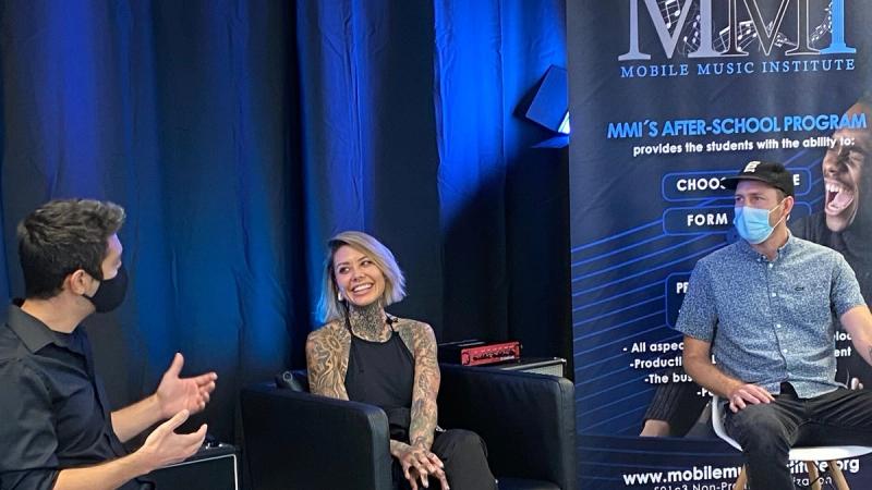After some Q & A with Reese, our students set up to perform our original song "Fake Love". While students were setting up, our singer Jada recording her scratch vocal track to the recorded version of the song.